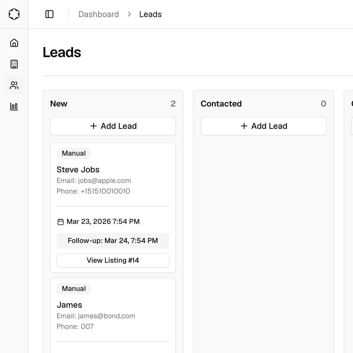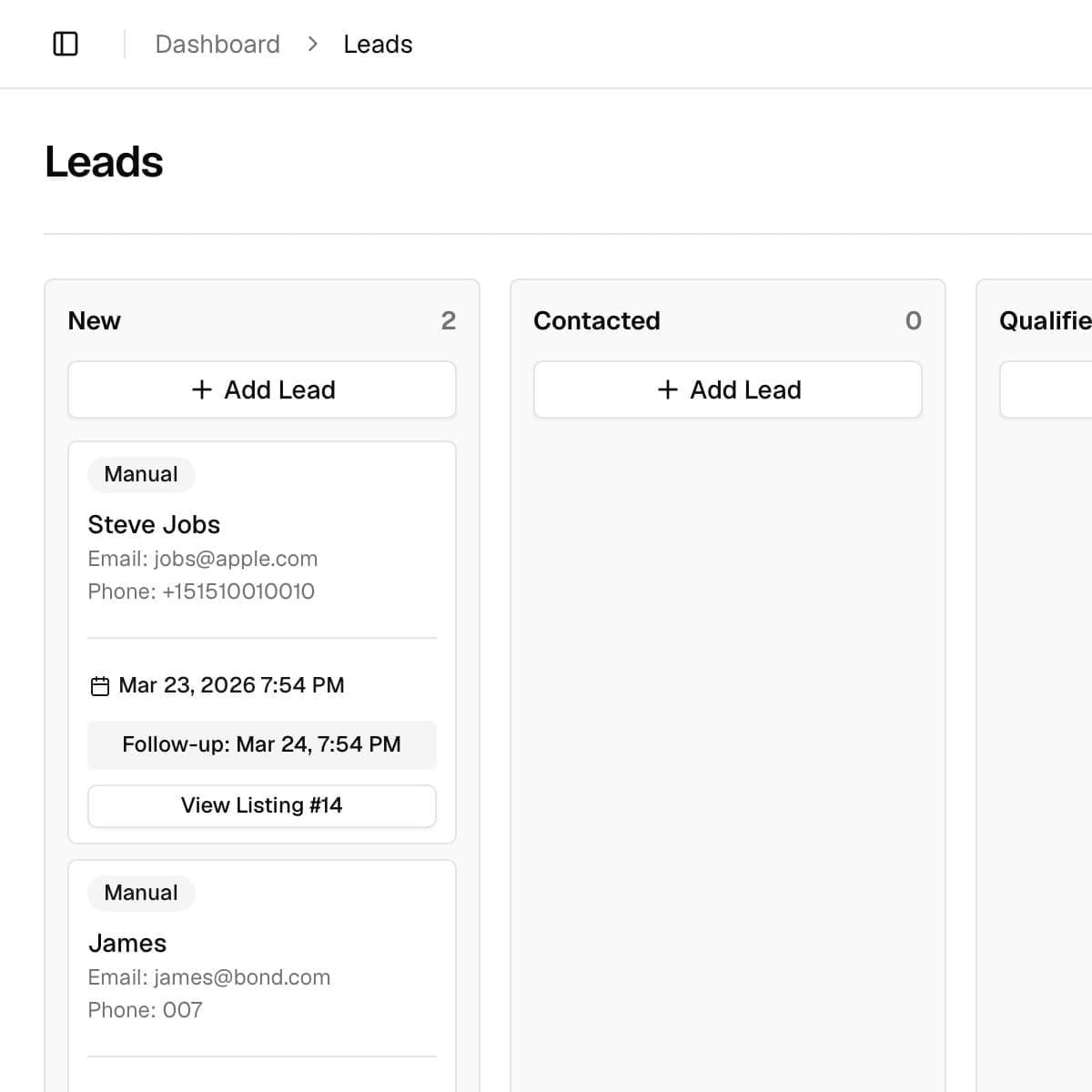 02The lead appears in your dashboard with the listing context attached.
