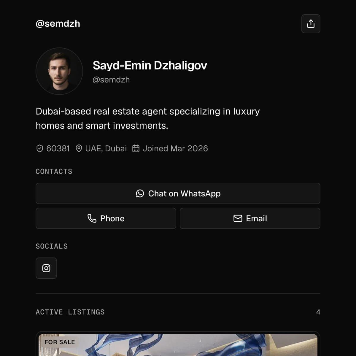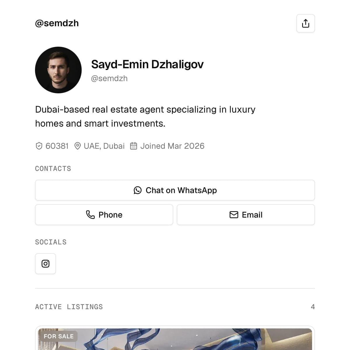 Turn profile views into direct inquiries with one branded page for your listings, your contact details, and your follow-up flow.