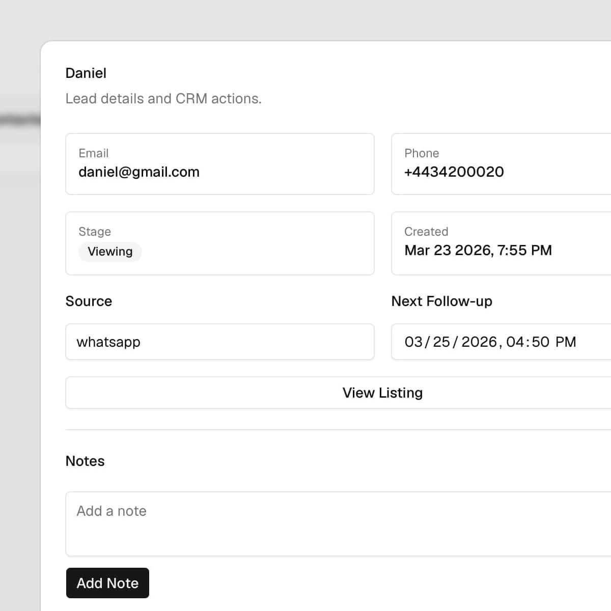 Lead details get split across WhatsApp, email, and notes, which slows follow-up and loses context.