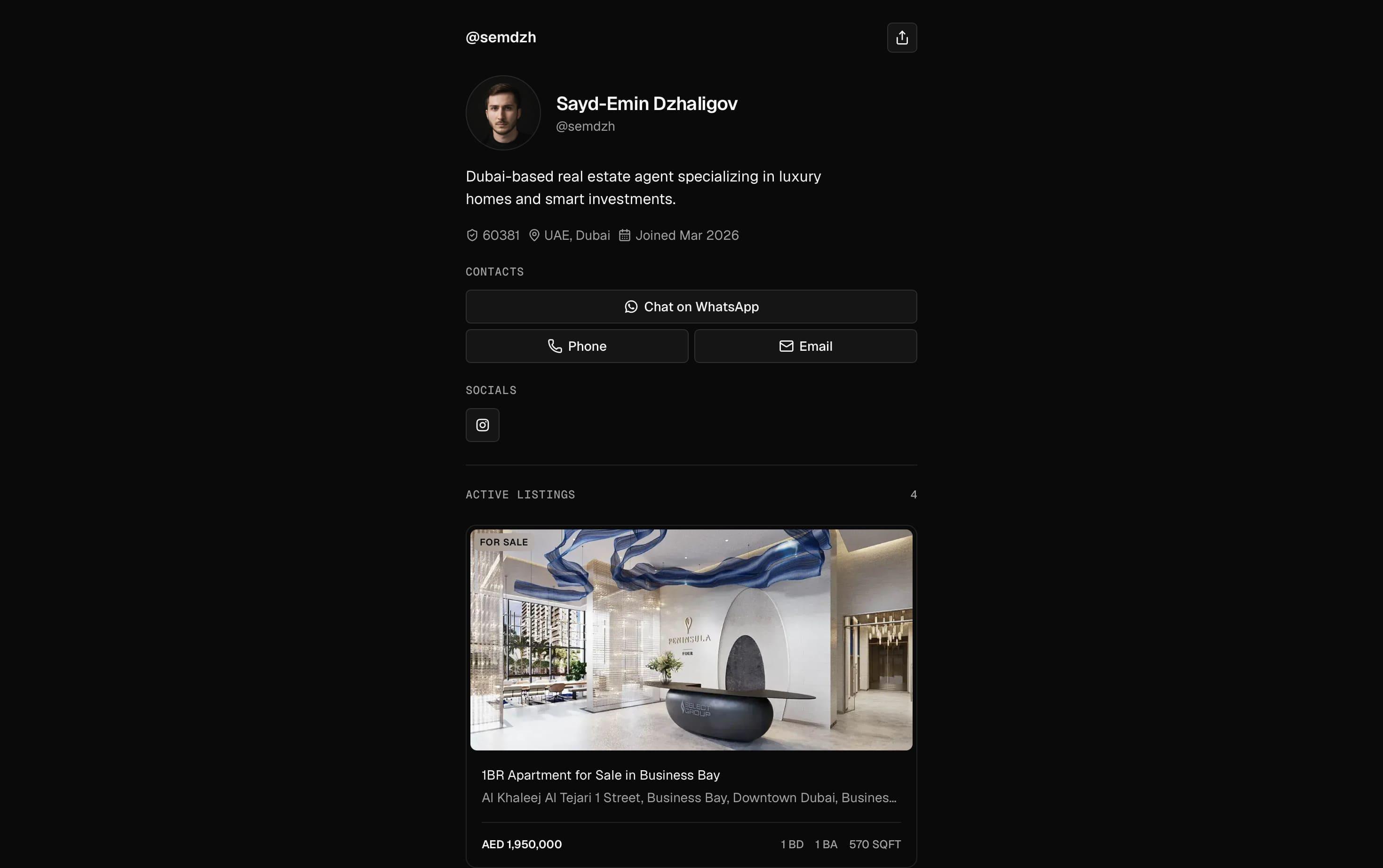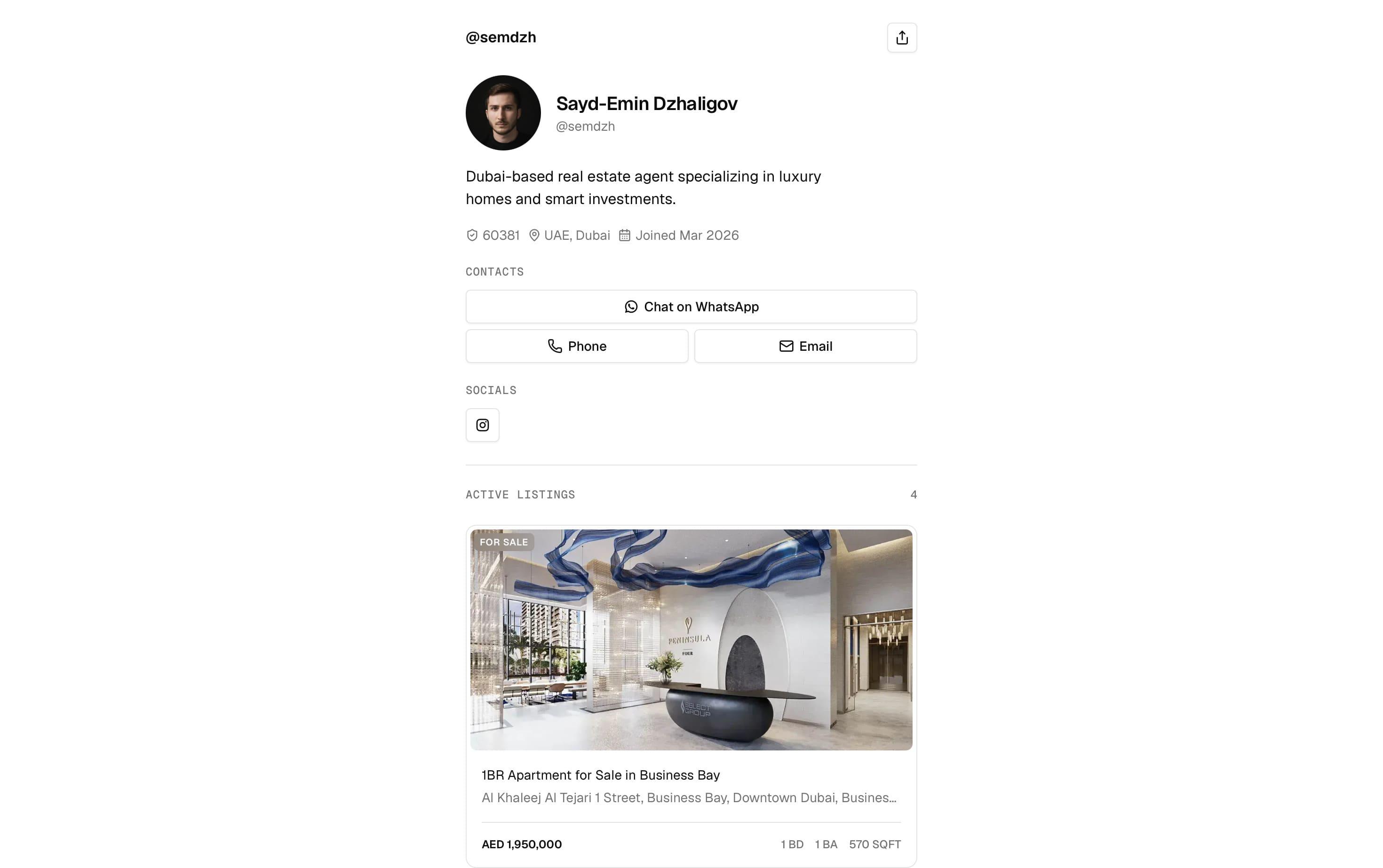 Turn profile views into direct inquiries with one branded page for your listings, your contact details, and your follow-up flow.