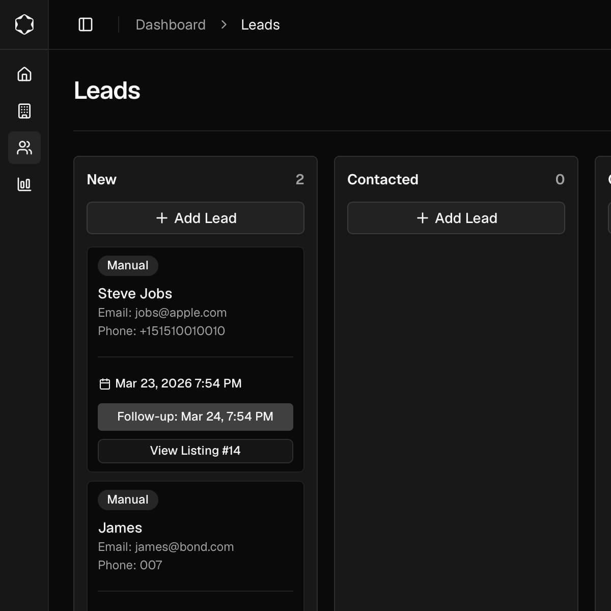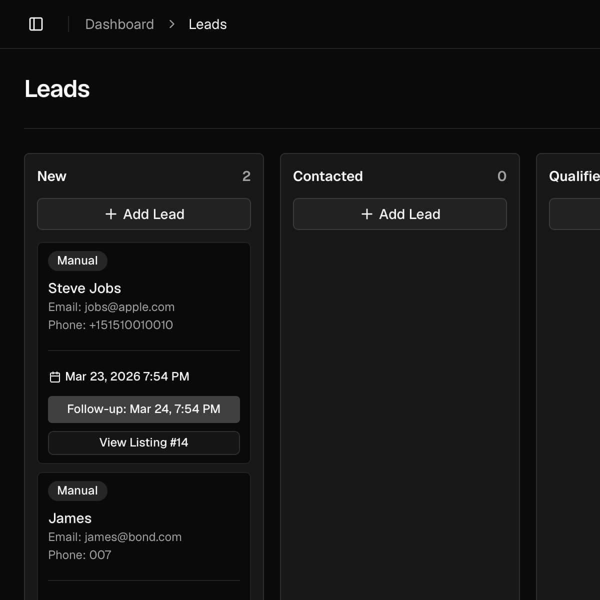 02The lead appears in your dashboard with the listing context attached.