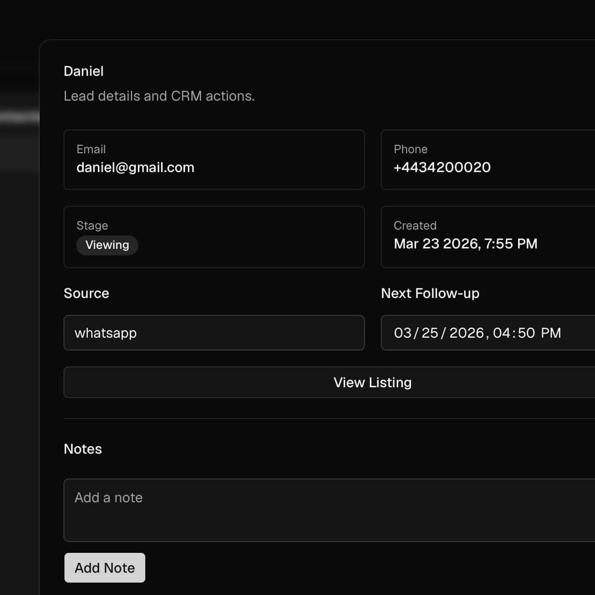 Lead details get split across WhatsApp, email, and notes, which slows follow-up and loses context.